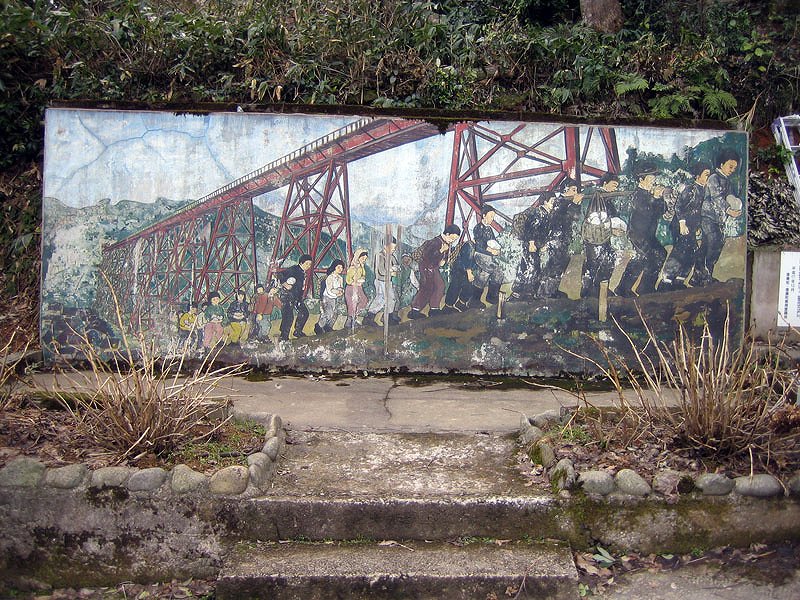 ![]() ホーム入り口付近にあった絵何の絵かと思ったら、 餘部鉄橋・・・ではなく、餘部駅の誕生に関するものでした。 |