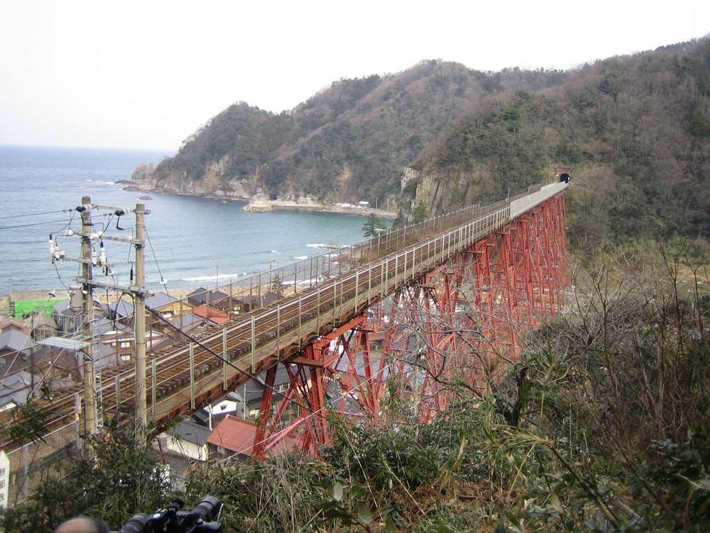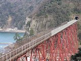 ![]() ![]() ![]() 餘部駅に到着、そして餘部鉄橋を渡る、上り普通列車。 |