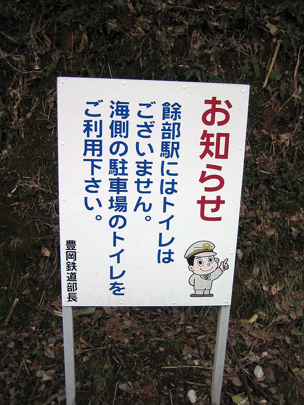 このように、餘部駅にはトイレは無いようです。なお 駐車場は、当然、ふもとにありますので、急に行きたくなっても、すぐには行けません。 ・・・ここに着いてから、これを見たときには遅いのだ(苦笑) |