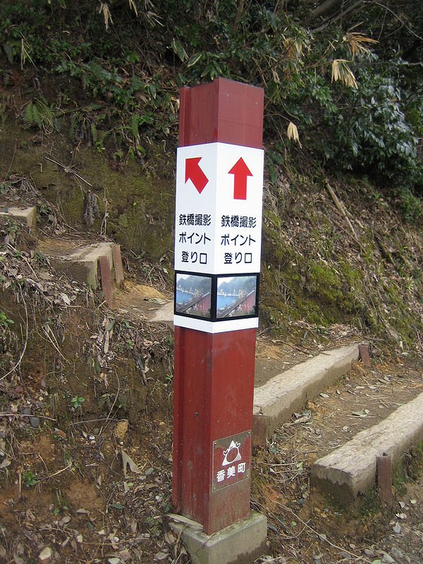![]() 上からの、鉄橋撮影ポイントへの入り口。なお、列車が来る直前に行っても、人で埋まっているので、イイ写真は撮れません。 ・・・ワタシは、強引に、斜面に三脚を立てましたけど(苦笑) ・・・結局、固定が甘い状態に...(上の連続写真が、若干ブレている) |
