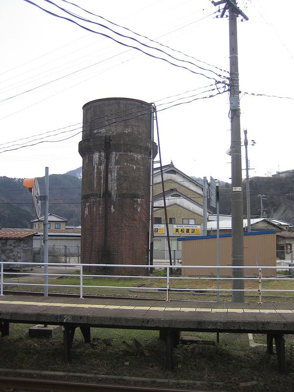浜坂駅に残る、給水塔。蒸気機関車時代の、貴重な遺産です。 |