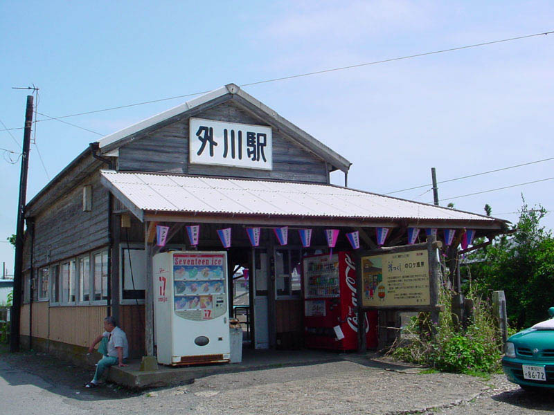 この銚子電鉄で、有名なおみやげとして、「ぬれ煎餅」があります。銚子には、ヒゲタ醤油,ヤマサ醤油といったような江戸時代から続く醤油メーカーがあり、そのような銚子の良質の醤油を、焼いたあとに染みこませた、柔らかい煎餅です。銚電のぬれ煎餅は、東京都内でもてに入るようですが、銚子電鉄に行くと、B級品(割れてしまったりとかで、通常の商品にならないもの)も売っていたりしました。B級品でも充分おいしかったので、人にあげるためのおみやげとは別に、自分へのみやげとして、そっちを買って帰りました(^^)