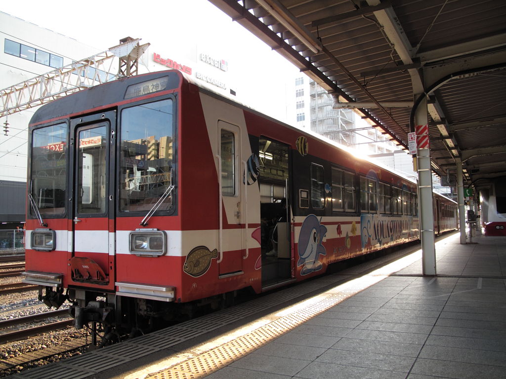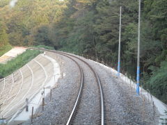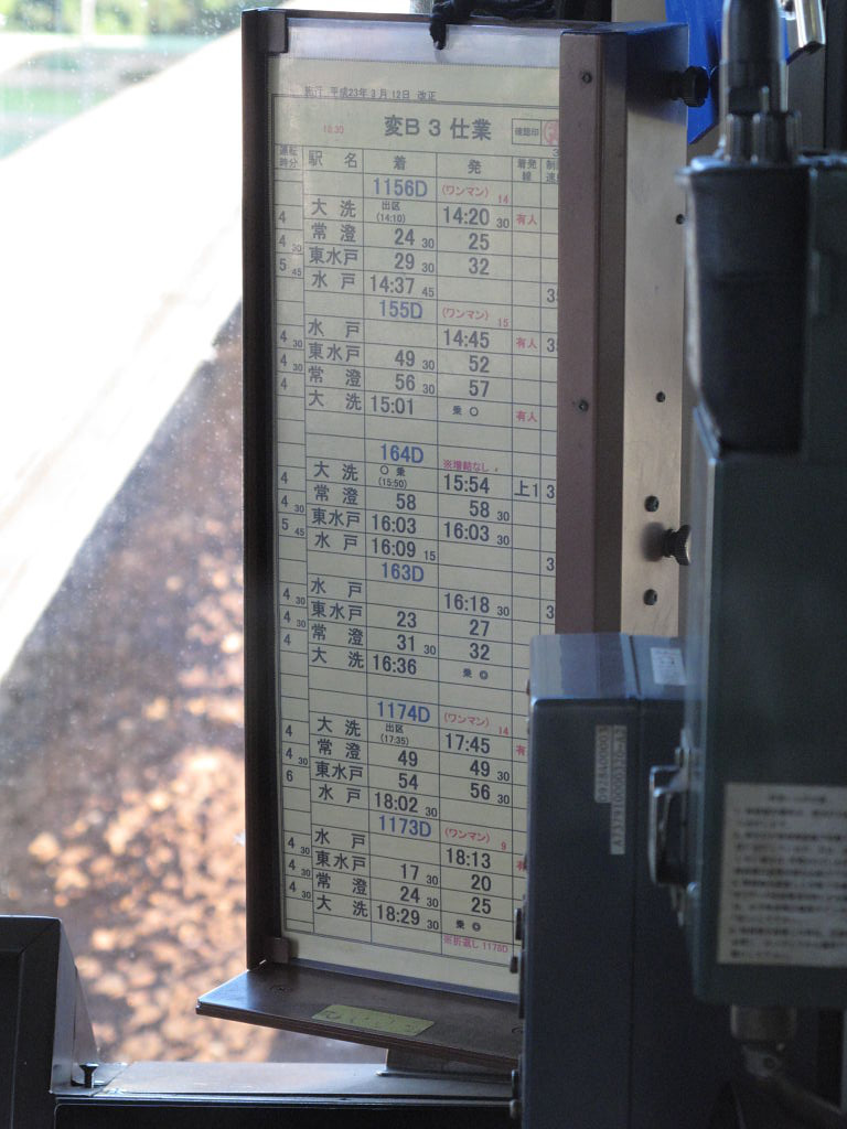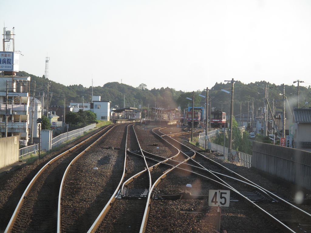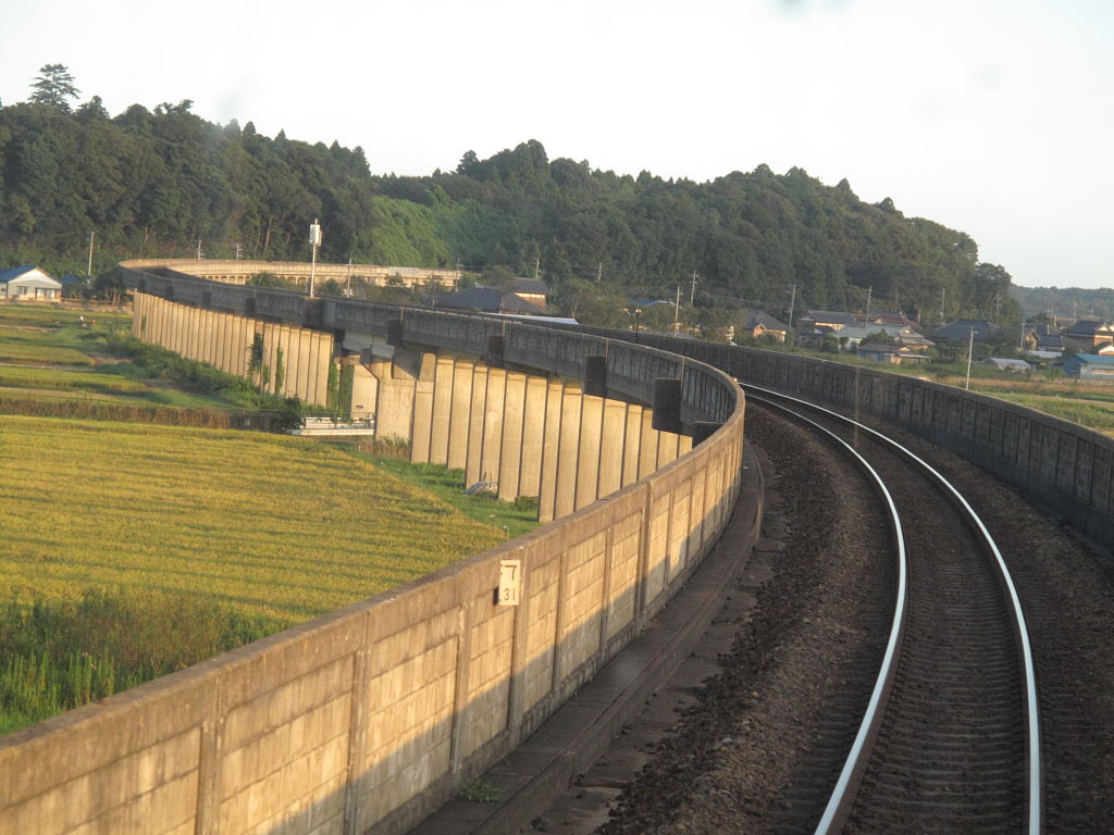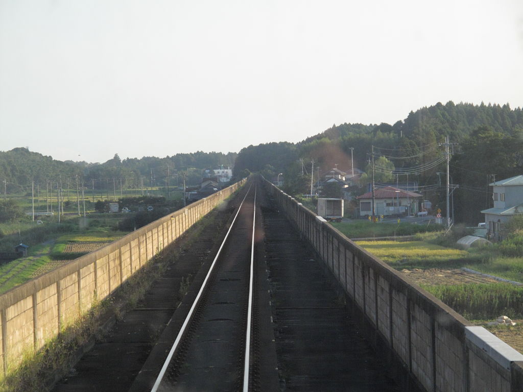 ここで、鹿島臨海鉄道(大洗鹿島線)へ乗り換える。 側面には、「アクアワールド大洗」の広告塗装 がんばっぺ!茨城16:18 水戸駅発車 地平の水戸駅から、鹿島臨海鉄道の線路だけが高架となり、JRの線路を越えた後、道路を跨ぎます。 変なかたちのトラス橋![]() 乗った列車の運行表です・・・大洗駅で乗務員交代するようです。 ガラスの反射に焦点が合ってしまい、見づらいですが、 崩れて穴の空いた、高架橋壁面。この程度は支障がないため、後回しになっているものと考えられます。 長く続く高架橋鹿島臨海鉄道(大洗鹿島線)の開通は、1985年(昭和60年)と、鉄道としては比較的新しく、また高速列車も運転できるよう、、高規格で設計されたため、踏切はほとんどありません。 ただし、今のところ、普通列車のみの運転となっています。 この線の中心駅。大洗(おおあらい)駅です。 ![]() 記念切符、グッズなどは、この駅で売られているのですが、 時間の都合で、下車は見送ったため、支援としては中途半端な結果となってしまいました・・・。 ![]() 大洗を過ぎると、山のなかの感じと、農村を高架で抜ける光景が繰り返されます。 高架のSカーブ地震で崩壊して、補修されたと思われる場所。 ![]() 撮影時刻から考えて、北浦湖畔駅〜大洋駅と考えられます。 ・・・なんでも無さそうな駅 長い駅名!この日は、乗客が多く、上手く撮影できませんでした。 駅名は「長者ヶ浜潮騒はまなす公園前(ちょうじゃがはましおさいはまなすこうえんまえ)」です。 ![]() 上に架線が張られ、側線が増えたところが、「鹿島サッカースタジアム」駅です。 この日は、隣接するカシマサッカースタジアムで試合が行われる日だったため、乗客のほとんどがここで降りていきました。 「鹿島サッカースタジアム」駅は、JRとの境界駅ですが、JRは貨物列車と、稀に設定される臨時列車しか来ません。また、鹿島臨海鉄道の列車も、隣接するカシマサッカースタジアムで試合が行われる日以外は通過となります。 元は「北鹿島」という貨物駅で、全列車が通過していました。 なお、通過する日であっても、JRとの境界駅という関係上、JRだけのフリーきっぷで乗車した場合、当駅区切りのきっぷを発行することになります。 17:36 鹿島神宮駅に到着。 ![]() JRの列車は、前述のように、基本的に「鹿島サッカースタジアム」駅に行かないため、実質の乗換駅です。 ここで、JR鹿島線に乗り換え。 17:49 発 北浦鉄橋を渡る辺りもだいぶ暗くなってきました・・・。 十二橋駅のあたりと思われます。18:05 香取駅下車・・・もう真っ暗なので、この後は、写真無し ;^_^A 「支援」としての乗車は、ここで完了。 なんでもない無人駅だけども、ここでJR成田線銚子方面行きに乗り替え。 銚子で、銚子電鉄に乗り換え。 今夜の宿は、犬吠駅近くにとってあるので、そちらへ移動。 |