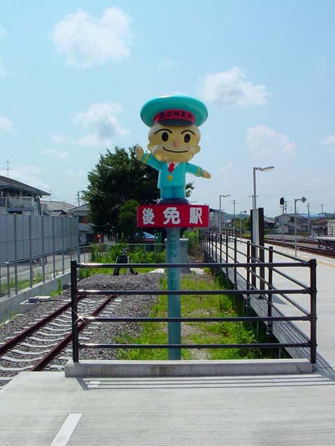 後免駅のマスコット「ごめん えきお君」 |