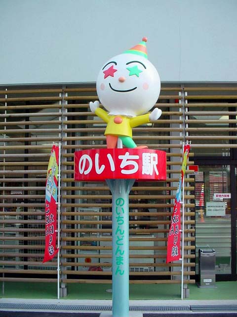 のいち駅のマスコット「のいちんどんまん」 |