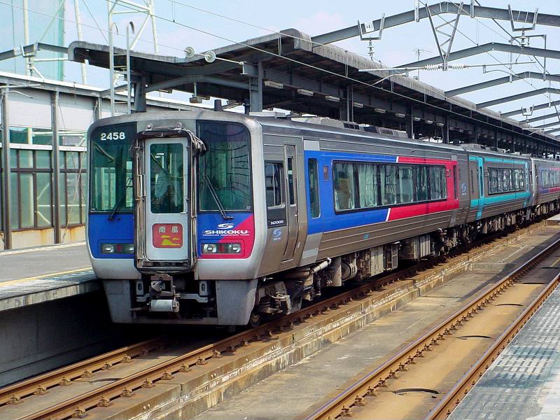 岡山から高知方面へ向かう「南風」号この車両は2000N系です。 (H14/8/16に宇多津駅で撮影) |