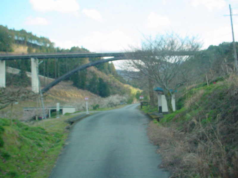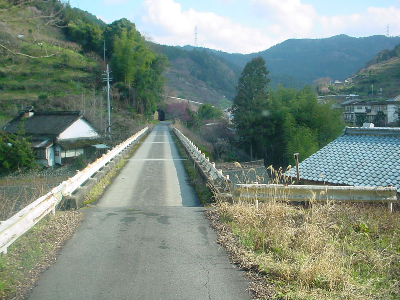 「賀名生(あのう)」の少し手前車1台分しかない橋。 専用道に架かっている橋は、すべてこんな感じです。 |