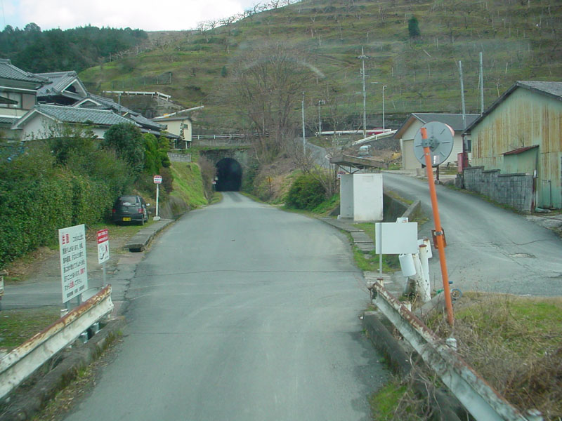 「専用道城戸」ここだけは、駅舎(?)があります。 このすぐ先には、使用されないトンネル(写真中央)と、一般道に降りる道があります。 「阪本線(五新線)城戸駅」はこちら |