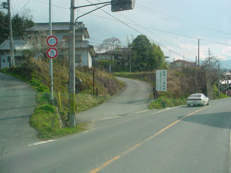「専用道神野(こうの)」専用道をまたいでいる橋は、国道168号(写真外右側)から分岐した広域農道「フルーツロード」。 写真は残念ながら、ボケている・・・。 |