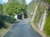 「専用道生子(おぶす)」この先のトンネルは「生子トンネル」 また、トンネル入り口の上にあるガードレールは、国道168号。・・・つまりこの付近は国道より低いところを走っている。 |
