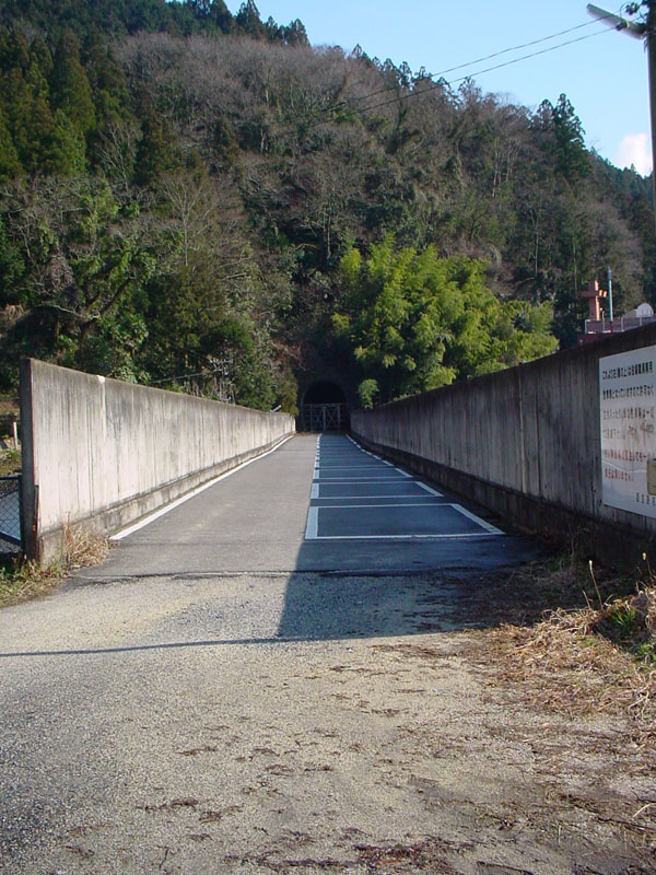 天辻トンネルの阪本側出口は、国道168号線の大塔橋の少し手前、国道脇にあるようです。「未成線を歩く」等の写真で見ると、柵さえなければ、そのまま自動車で突っ込んでしまいそうな場所です。天辻トンネルは、立川渡付近の山中からここまで、ほぼ直線に貫いているそうです。このトンネルが、なんらかの交通で供用されていれば、相当な時間短縮になっていたと思われます。実際に、天辻トンネル竣工後に、バス運行(国鉄バス阪本線の延長)の請願が出されていたそうです。しかし、実際は見ての通り・・・「未成線を歩く」にも書いてあったことですが、5kmの単線鉄道トンネルでのバス運行は、排ガス処理に問題が有ったことでしょう。