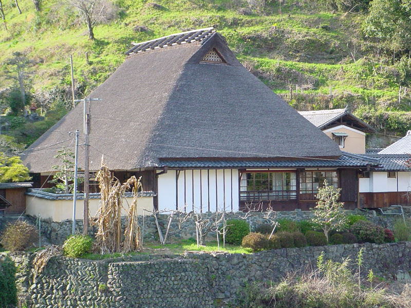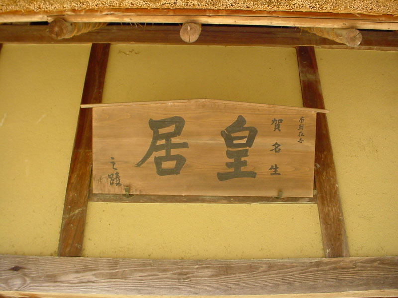 | 後醍醐天皇が、吉野山へ向かう途中、この「堀家」に立ち寄られ、その後、吉野が攻められた際に後村上天皇が逃れ、「堀家」に住まわれた。なお、「皇居」の扁額は、江戸後期になって書かれたものだそうでである。(現在の扁額は、レプリカで、本物は民俗資料館にあるようである) なお、阪本線(五新線)が、賀名生を経由するルートが選ばれたのも、皇室とのつながりを考慮した可能性もある(※1)。 |