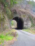 | 立川渡から山越えの国道旧道に入って、道路沿いにある。天辻トンネルは、この滝を過ぎたあとに見えるそうだ。五新線跡を探索した人のサイトには、立川渡バス停から徒歩30分とのこと。 |