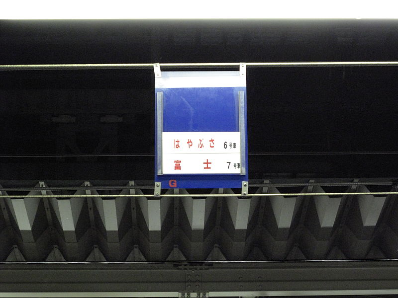 「はやぶさ」「富士」の乗車位置を示す案内 |