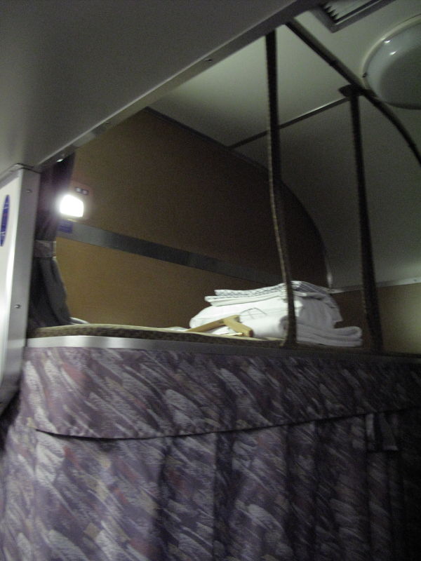 周りの客は、カーテンを閉ざして、もう寝ています。 |