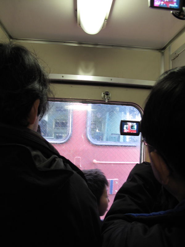 つないだ機関車を、車内から撮影。このあと、関門トンネルに入りました。 |