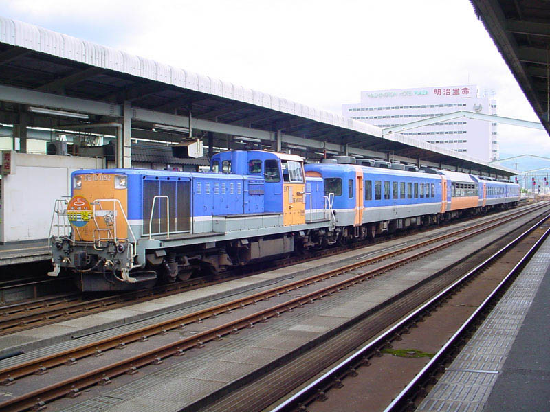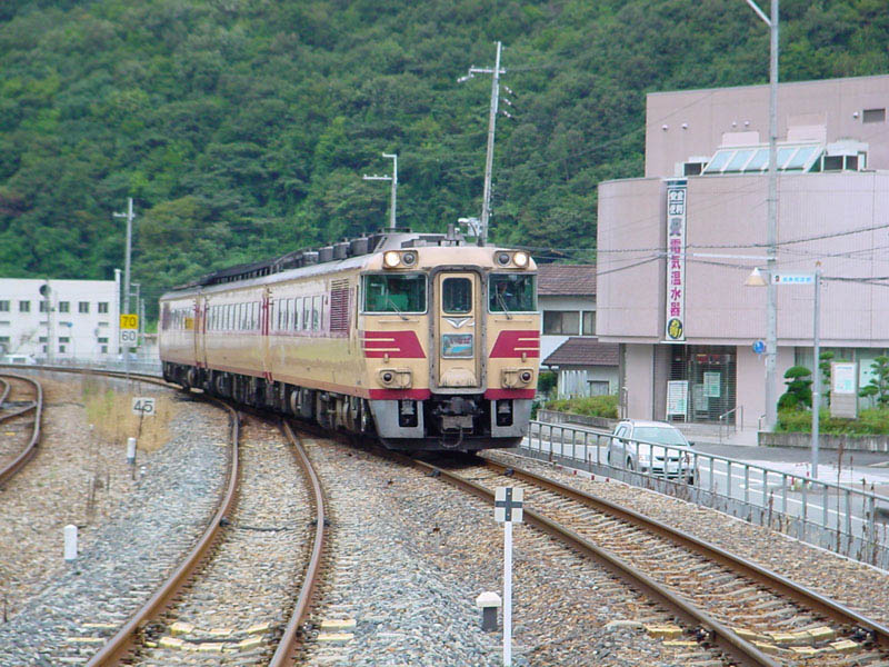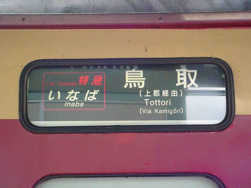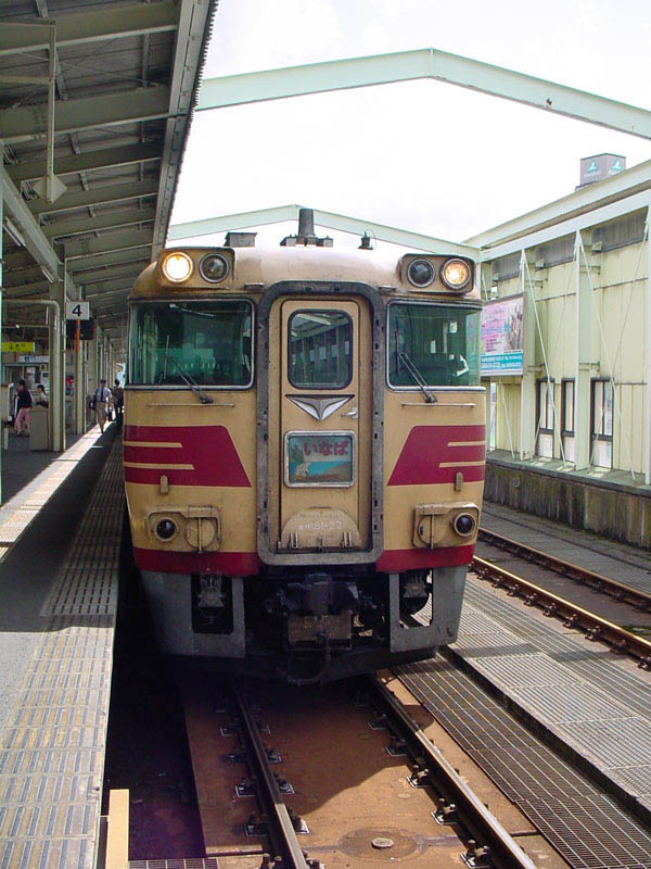 岡山−(智頭急行)−鳥取を走る「いなば」号は、平成9年に登場した、比較的新しい特急列車です。登場当初からキハ181系による運転でしたが、これは、おそらく、山陰本線を走っていた特急「あさしお」号(現在は電車化:「きのさき」「たんば」etc)で使用されていた車両を回したものと思われます。