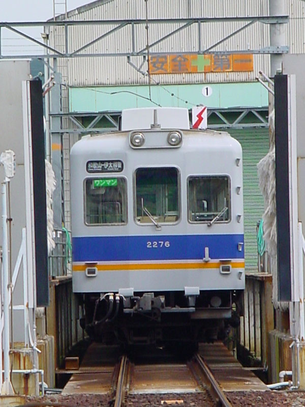| ※1 貴志川線の車両は、複電圧仕様(600V,1500V)になっているため、やろうと思えば1500VのJR紀勢本線や南海電鉄に乗り入れることも可能であるが、運転区間延長によって車両が不足し、新たに600V対応車を増備しなくてはならなくなる。もちろん、貴志川線を1500Vに昇圧することになれば、大幅な工事費用が発生する。現在の貴志川線に、そこまでの投資は難しいであろう。 なお、おそらくこの複電圧対応は、大検査時に、南海線の検車場への回送を可能にするためか、貴志川線廃止時に1500V運用に戻ってもらうための措置ではないかと考えられる。 |