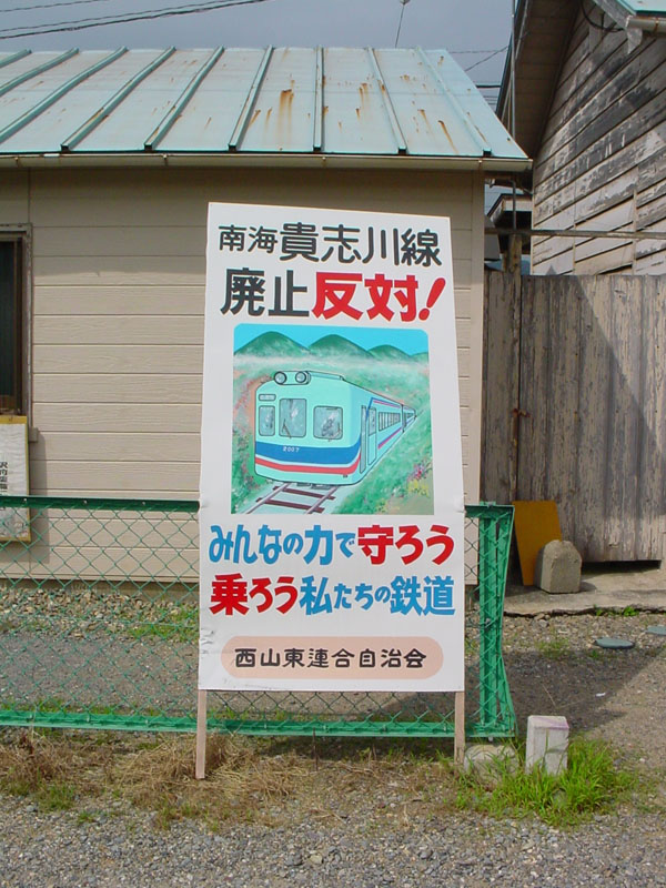 伊太祁曽駅にあった、廃止反対の看板。 撮影に行った当時は、廃止が確定していました。 |