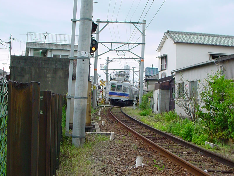 田中口−日前宮駅間(と思われる)市街地では、家と家の間を走ります。 |