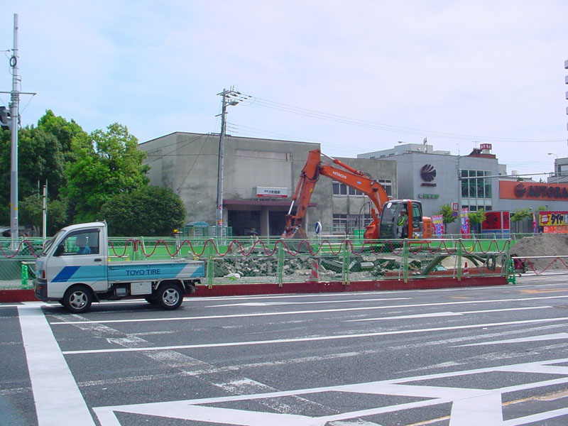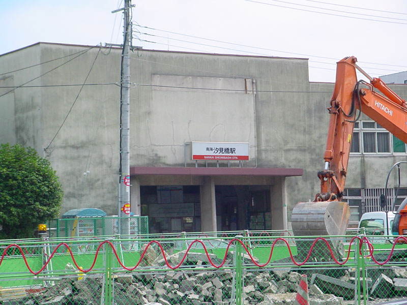 ![]() 汐見橋駅、外から。道路中の工事は、阪神電鉄西大阪線延伸工事です。 この写真の左(東側)は、汐見橋交差点になっていて、さらに左には地下鉄千日前線桜川駅があります。 また、汐見橋交差点を、手前側(北側)に少し進むと、道頓堀川があります。 |