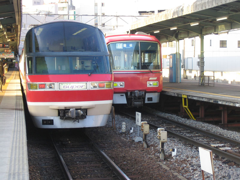 「ミュースカイ」登場まで、名鉄のエースだった「パノラマsuper」(特急)と、快速急行列車です。「パノラマsuper」の指定席車は先頭部分が2階建てになっていて、1階に運転席、2階に客席があります。 |