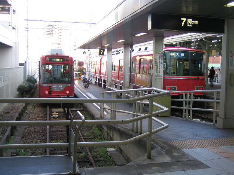 各務原線列車用の高床ホームと、田神・美濃町線列車用の低床ホームがあります。 |