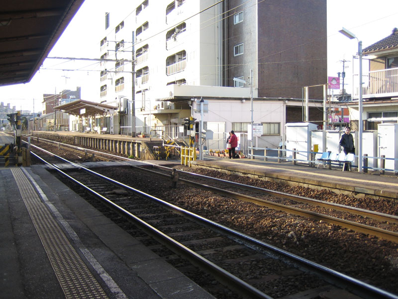 | 岐阜市内線との接続駅(電停)で、美濃町線の起点駅(電停)でした。ただし、ここから発車する電車は、「野一色」行きか「日野橋」行きで、「新関」方面へ行くには、「野一色」駅で乗り換えが必要でした。(「新関」方面直通が完全に無かったかどうかは不明です) なお、1500V区間を走る必要がないため、複電圧対応でない車両が主に使用されていたようです。 | |