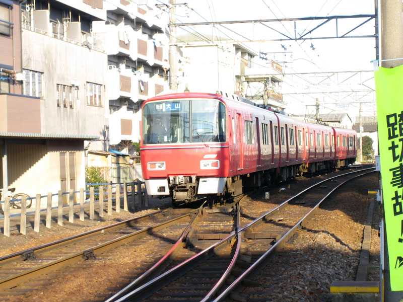各務原線列車が田神線の分岐付近を走っています。 |