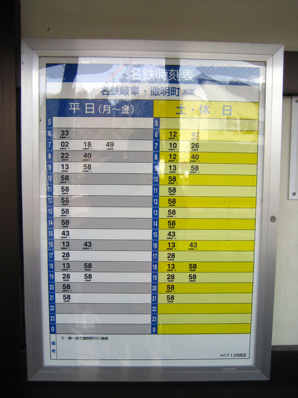 | 新岐阜(名鉄岐阜),徹明町から伸びてきた美濃町線も、廃止時点での終点である関まできました。全線を載ってみて、感じたことは、 ・・・スピードがおそい・・・ 美濃町線は専用軌道に入っても、道路脇に「半併用軌道」状態で走行する場所が、結構多かったように思います。そのような区間では、一応、道路と分離されているので、軌道敷内を自動車が走ることが無く、渋滞に巻き込まれる等で遅延ということはありません。しかし、脇道から自動車,自転車,人が飛び出してくる可能性があるため、結局、併用軌道区間と同様の速度でしか走れませんでした。 車両の速度計も、目盛りが60か70km/h程度までしか無かったように思います。 |