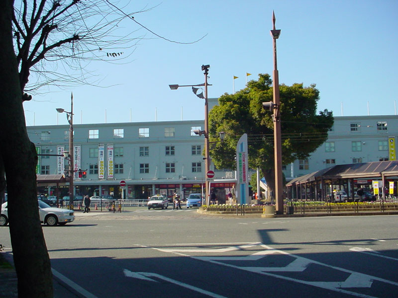 ![]() 鹿児島本線熊本駅。平成3年に外装を大幅リニューアルした駅舎。 3階の窓の向こうには、空が見える(笑) 実際は2階建ての駅舎。 駅前には、熊本市電が通っています。 |