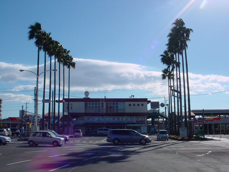 日南線の起点、日豊本線の南宮崎駅です。南国ムード満点の駅前(笑) 近くにはバスターミナル+ショッピングセンターの宮交シティがあります。 |