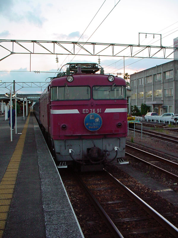 南宮崎駅で出発を待つ、寝台特急「彗星」号。この列車は、一晩かけて、京都に向かいます。 この列車は、次のダイヤ改正で、廃止が決まりました・・・。 |