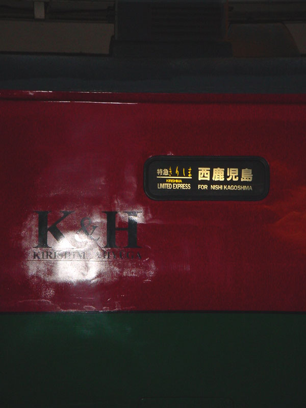 南宮崎駅に停まっている、特急「きりしま」の「西鹿児島」行き。 |
