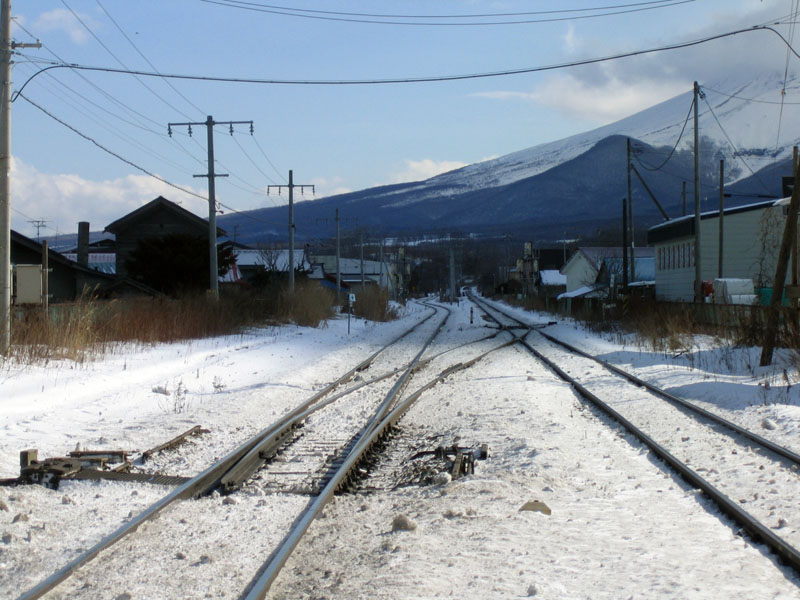 | 函館本線において、七飯駅〜大沼駅〜森駅は、8の字ルートを形成しています。そのうち、もともとの本線は、それぞれ仁山駅経由,駒ヶ岳駅経由で、大沼駅に向かうには、どちらからも上り勾配となってしまうため、あとから勾配緩和線がつくられました。 七飯駅〜大沼駅は、仁山駅経由と、途中駅のないルート(通称:藤城線)に別れています。仁山駅経由は途中に急勾配があり、仁山駅は、もとは勾配途中の信号場でした(仁山駅の詳細は、後日別掲予定)。また、藤城線の方は、七飯駅を出るとすぐに、コンクリート高架で上り始めていて、この区間全体に勾配を分散させている感じです。 この区間は、どちらのルートでもあまり距離があまり変わらないため、大沼方面へ向かう優等列車,貨物列車の全て、そして普通列車の一部は藤城線回りとなっています。 大沼駅〜森駅は、駒ヶ岳駅経由と渡島沼尻駅経由に別れています。こちらは、ルートによって距離が大幅に違い(22.5kmと35.3km)、渡島沼尻経由は距離を稼ぐことで勾配を緩和しているような感じです。現在は、車両の性能が上がり、多少の勾配なら問題なく登ってしまうため、大沼方面へ向かう優等列車は急行「はまなす」号を除き、駒ヶ岳駅経由となっています。(貨物列車については不明) |