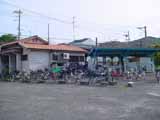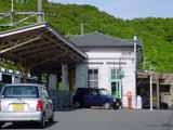 深日港駅。淡路航路がまだあった時代、臨時改札となっていたであろうところ。(青屋根の部分) |