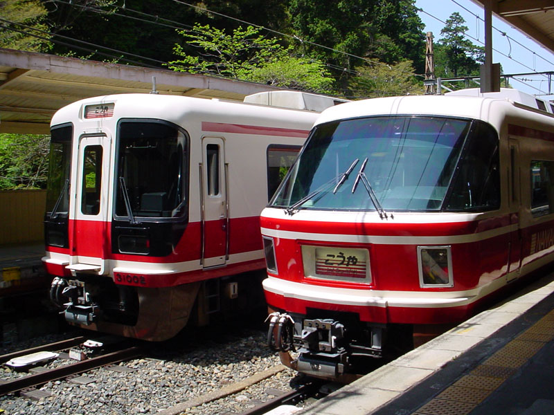 極楽橋駅で並ぶ、こうや号30000系(右)と、こうや号31000系 |
