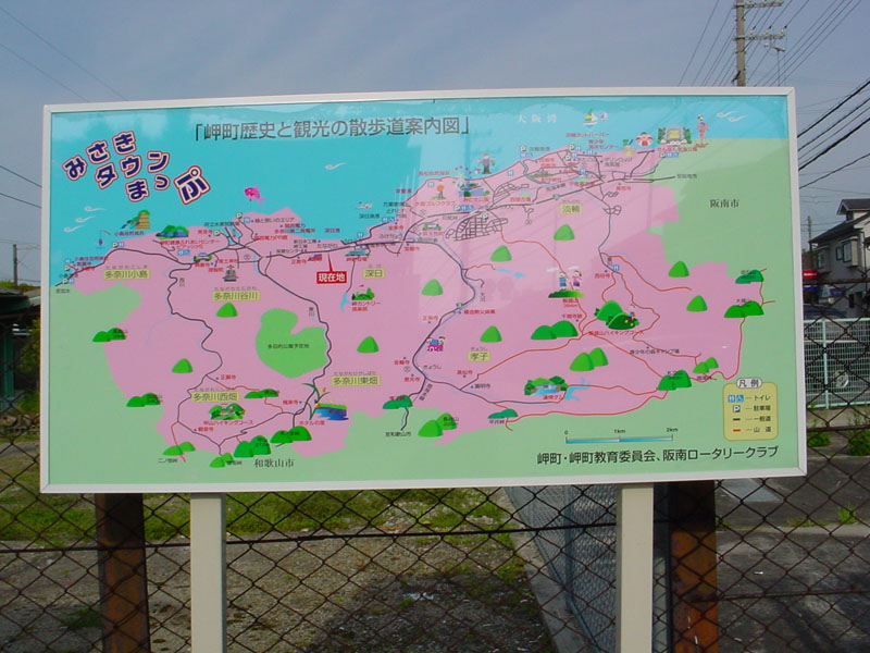 多奈川駅前にあった、岬町観光案内図。岬町は、大阪府の最南部にあります。 |