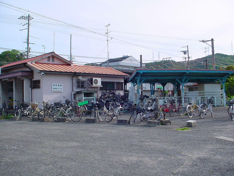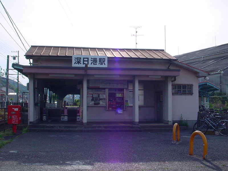 多奈川線、多奈川駅から1駅目、深日港(ふけこう)駅。かつては、駅前の港から、淡路航路や友ヶ島観光船が出ていました。 |