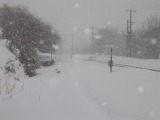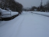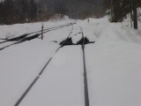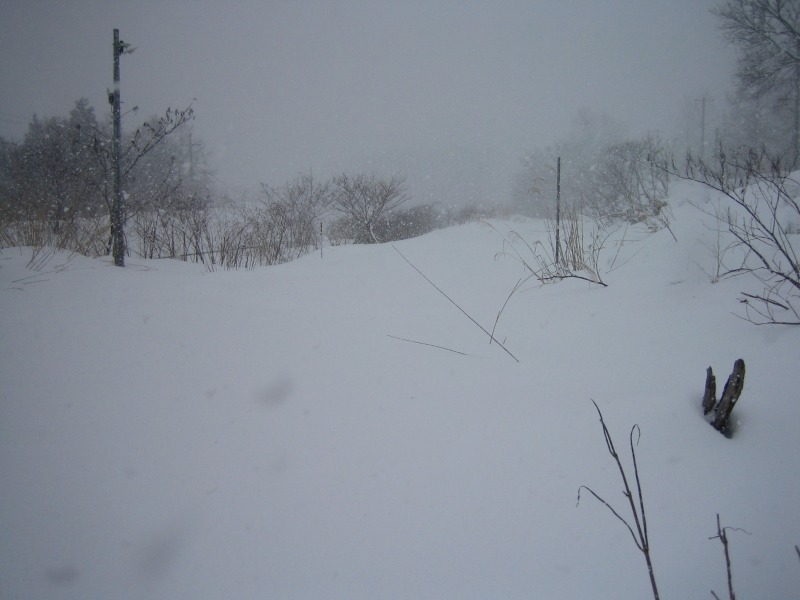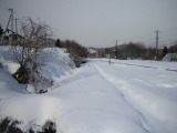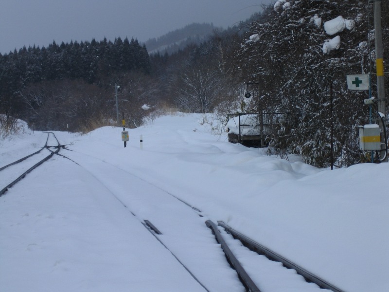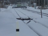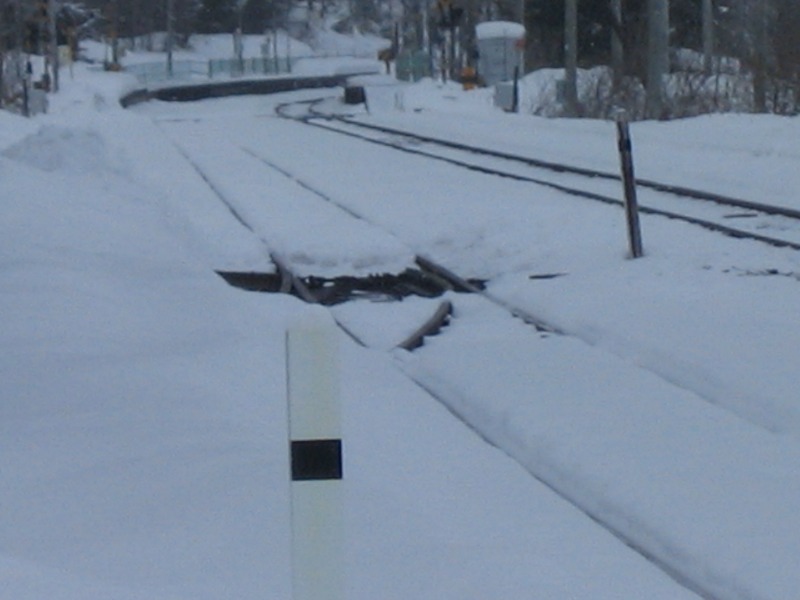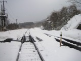 スイッチバック加速線途中から終端方向を見る・・・・・・雪でよくわからない。 ただ、この除雪状況から、残念ながら、使われていない、ということだけは確かなようだ・・・。 |