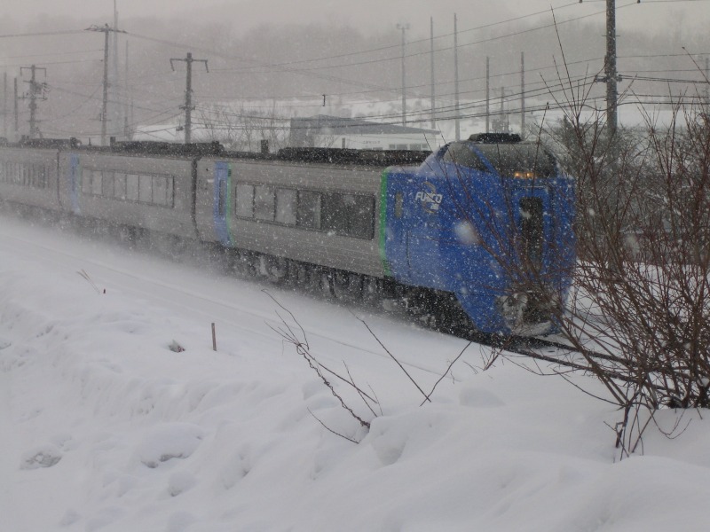 上り(函館方面)の特急列車が来ました。もちろん、仁山駅は通過です。 |
