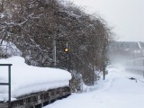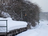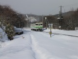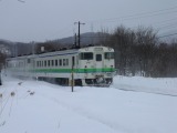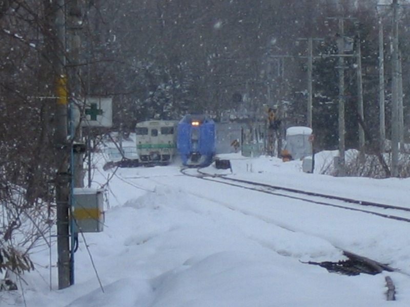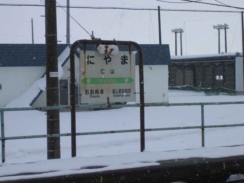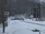 左の写真を撮影中に、仁山駅函館側の踏切が鳴り始めました。退散しようにも、雪で足を取られ、それでもなんとか上り線路脇まで逃げました。来た貨物列車がゆっくりの走行であったため、カメラ構える余裕ができましたが・・・。 軌道敷に入っての撮影は、それなりのリスクが伴います。時刻表に列車が載っていなくても、臨時列車や貨物列車の運転、ダイヤの乱れ等によって、列車が来ることがあります。 本来、許可無く軌道敷内に立ち入ることは禁止されています。私もやってしまった以上、大きな事は言えませんが、軌道敷内への立ち入りは最小限にとどめ、(個人的な興味を含めた)撮影,調査などで、どうしても立ち入る場合は、周囲の状況に最大限注意し、最悪、予想外の列車が来てもすぐ避難できるよう態勢で、自己責任で行ってください。取り返しのつかないことが起こっても、私は責任を負えません。 |