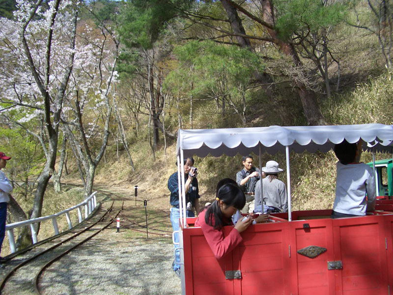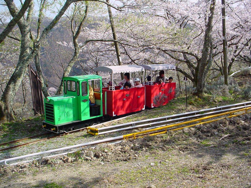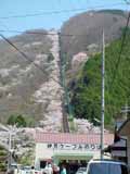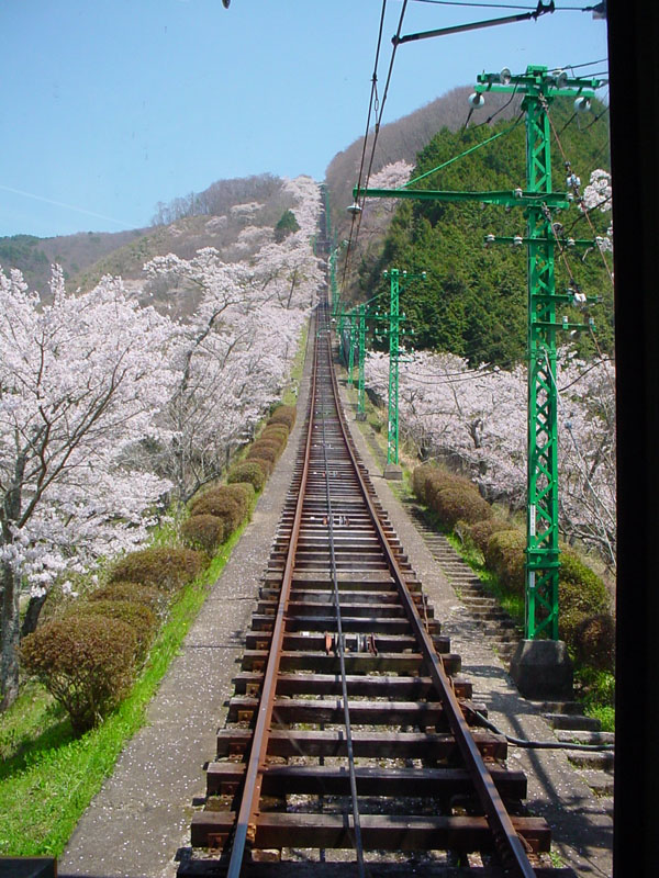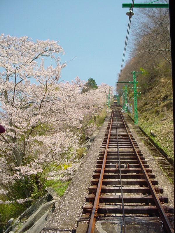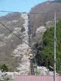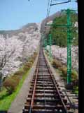 ![]() ![]() ケーブルカーの中から行き違い地点まで。左側は、ずっと桜並木が続きます。 写真はありませんが、この先も左側は山上駅までずっと桜並木です。 |