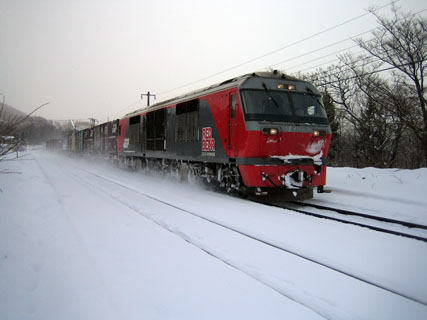 雪の中を行く貨物列車 (函館本線仁山スイッチバック付近) (平成17年2月12日撮影) 平成18年1月1日〜2月8日掲載 |