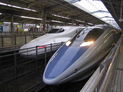 N700系(左)と、500系 (新大阪駅:平成20年2月10日撮影) 平成20年2月13日〜12月25日掲載 |