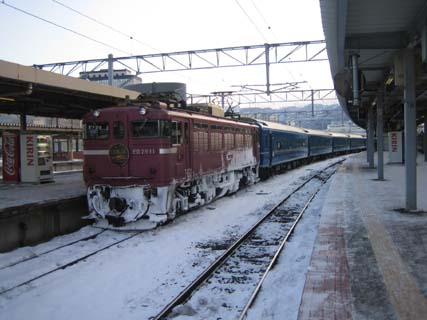 函館駅で発車を待つ寝台特急日本海 (平成17年2月12日撮影) 平成18年2月8日〜3月31日掲載 |